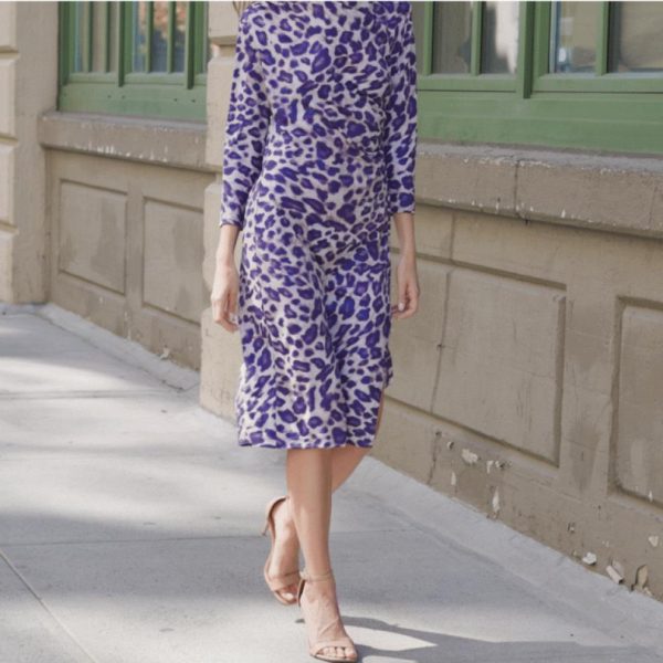 Dresses Jumpsuits | Women Clara Sunwoo Foil Knit Side Slit/Sleeve Midi Dress Plum Cheetah