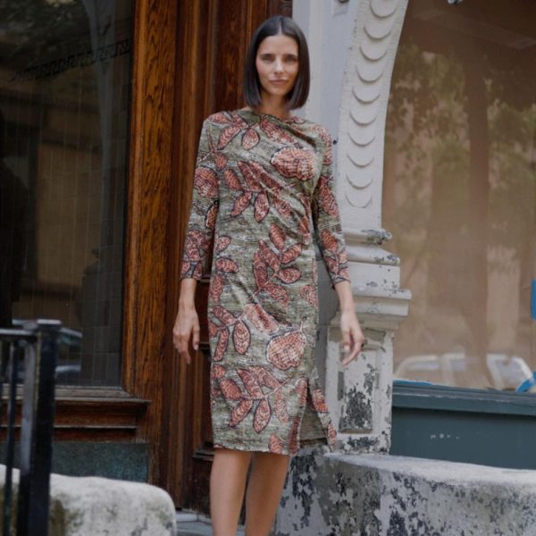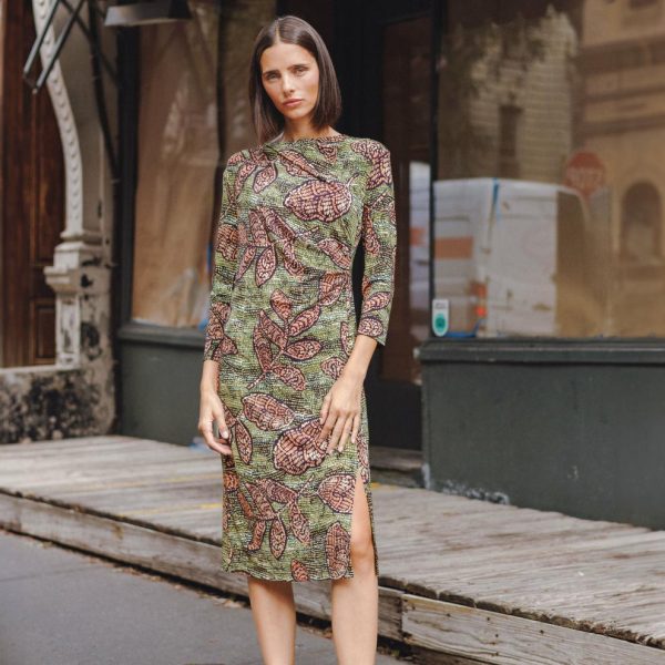Dresses Jumpsuits | Women Clara Sunwoo Side Slit/Sleeve Midi Dress Mosaic Leaves Final Sale!