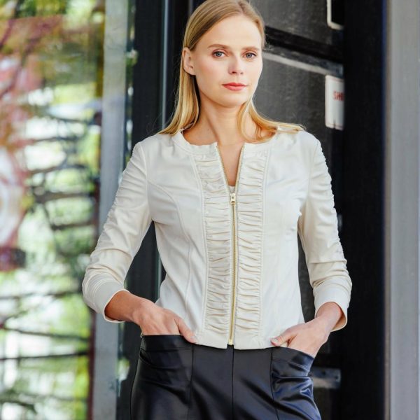Experience our unique Liquid Leather Ruched Detail Jacket which is made from our beautiful signature stretch knit, extremely lightweight soft The model is 5’9″ wearing Extra Small (4/6)