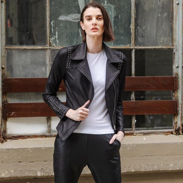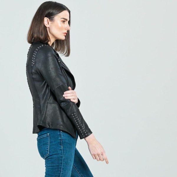 Jackets Cardigans | Women Clara Sunwoo Liquid Leather™ Studded Jacket Black