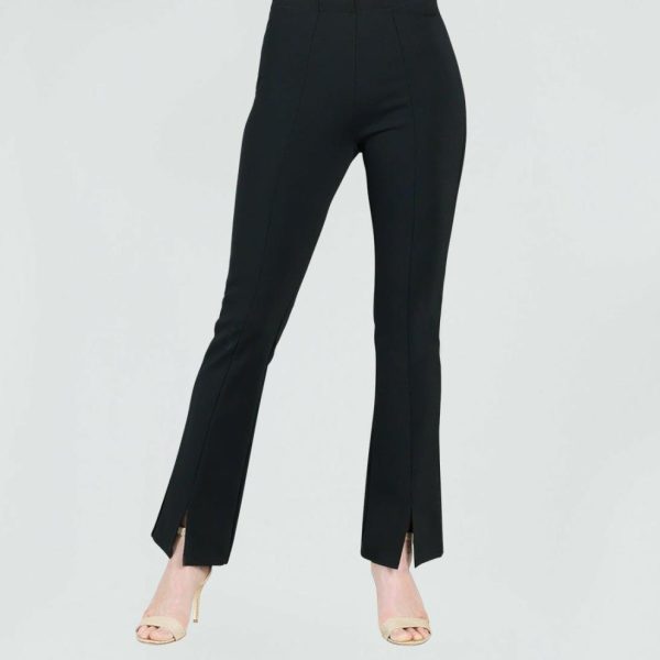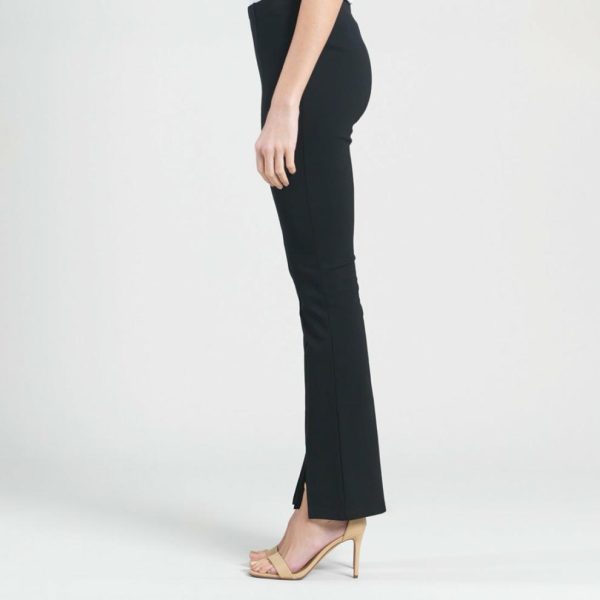 Our sleek and chic Ponte Kick Front Slit Pant is all the style you need. This pant features a 1” pull-on elastic waistband, vertical center leg seam with a flared hem, and sleek front leg slit. Made to provide a slimming silhouette in the hip and thigh area while gradually flaring towards the hem.