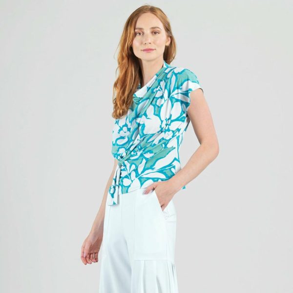 Bloom where the tropical breeze takes you, in our Paradise Petal Drape Neck Loop Front Top! An innovative top featuring cap sleeves, soft pleat details on the left shoulder, a feminine draped neckline that cascades to display a unique pull-through loop front detail that creates a chic, asymmetrical silhouette with a banded waist and straight hemline.
