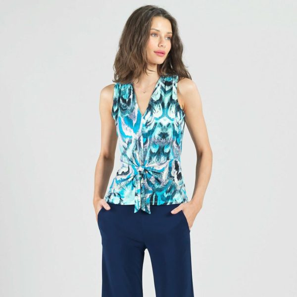 If you’re looking for a style that’s light years ahead, look no further than our Abstract Prism V-Neck Sleeveless Center Front Tie Top! This flattering sleeveless top features a classic v-neckline, pleated shoulder seam, a vertical neck-to-hem center seam, and a front-center waist tie that creates a beautiful draped effect that accentuates your natural figure.