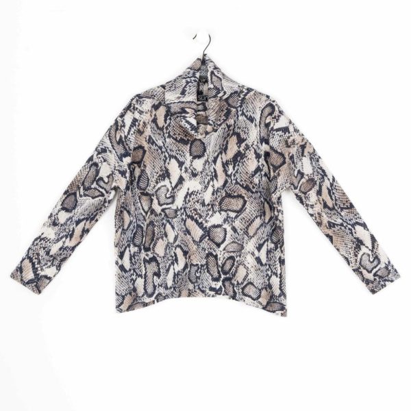 Let our Python Scale Cozy Texture Tipped Hem Sweater Top slither its way into your closet! This sweater features a cowl-style turtleneck, long sleeves, and a tipped hemline.