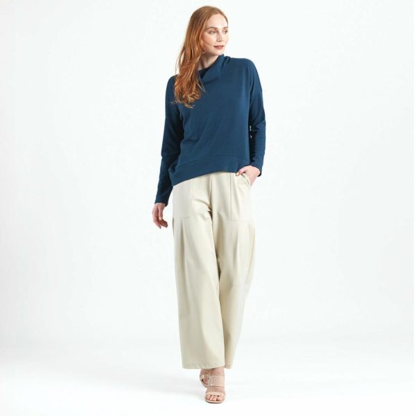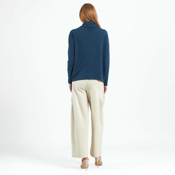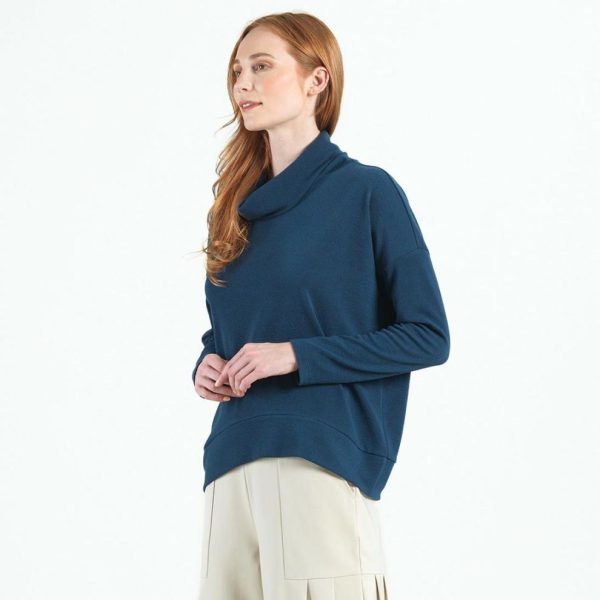 Our French Terry-Like Knit Cowl Turtleneck Sweater Top will be your best companion during cooler months! This sweater features a cowl-style turtleneck, long sleeves, and a seamed, tipped hemline.