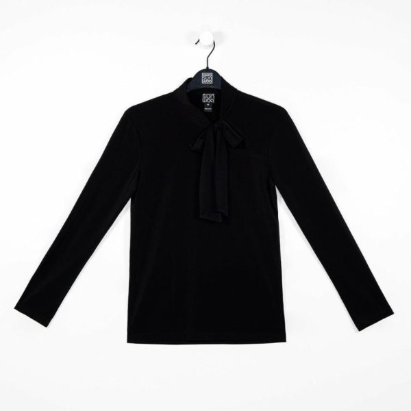 Our Asymmetrical Bow Tie-Neck Top is sure to make you want to tie the knot! Featuring a high neckline with an asymmetrical adjustable bow tie detail, which when tied, creates a charming eyelet cut-out feature, long sleeves, and a straight hemline.
