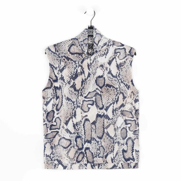 A visually striking print, displaying python scales in shades of navy, ivory, and dark taupe, over a creamy-beige background.