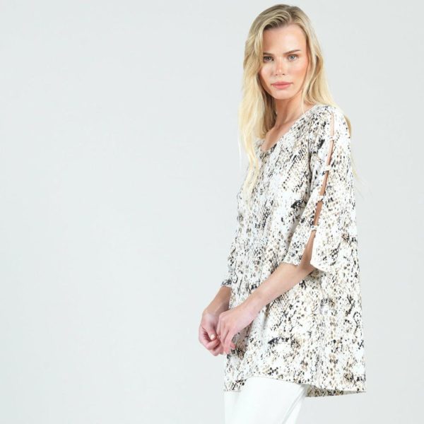 Our Python Print Ladder Sleeve Tunic gives new meaning to the phrase The model is 5’9″ wearing Extra Small (4/6)