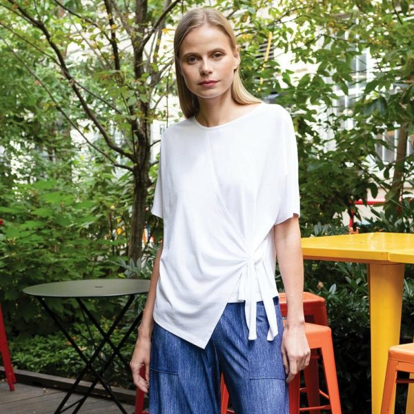 Our Peach Skin Knit Side Tie Wrap Top is minimalism at its finest! This top features a round neckline, short sleeves, and an adjustable, side tie wrap detail which gives a slightly angled hem, and allows you to create a silhouette of your liking.