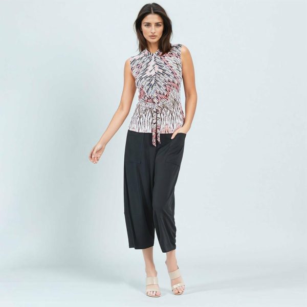 Our Boho Weave Sleeveless Center Front Tie Top is a style you won’t mind putting all your eggs in one basket for! This flattering sleeveless top features a v-bottle neckline, a vertical neck-to-hem center seam, and a front-center waist tie that creates a beautiful draped effect that accentuates your natural figure.