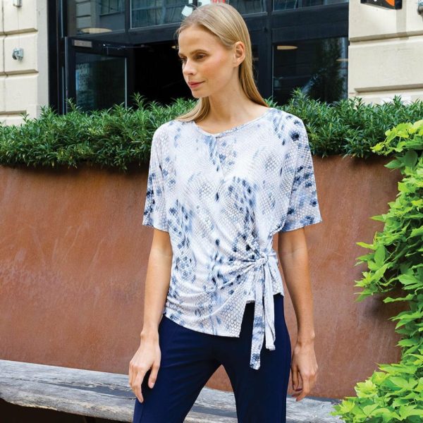 There is nothing more charming than our Python Textured Side Tie Wrap Top! This top features a round neckline, short sleeves, and an adjustable, side tie wrap detail which gives a slightly angled hem, and allows you to create a silhouette of your liking.